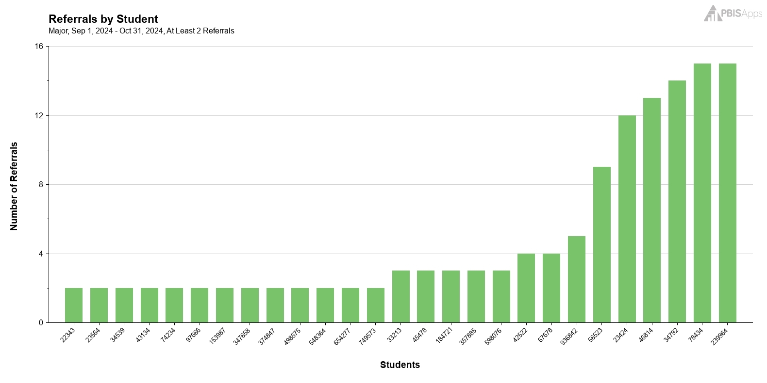 - Generate the Referrals by Student Report and look for students with two or more referrals by the end of October.